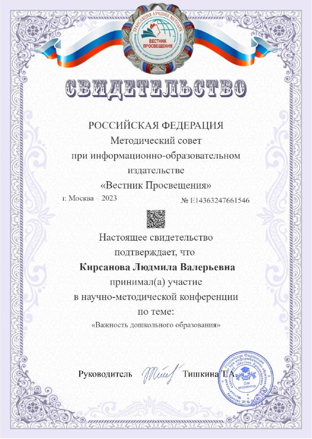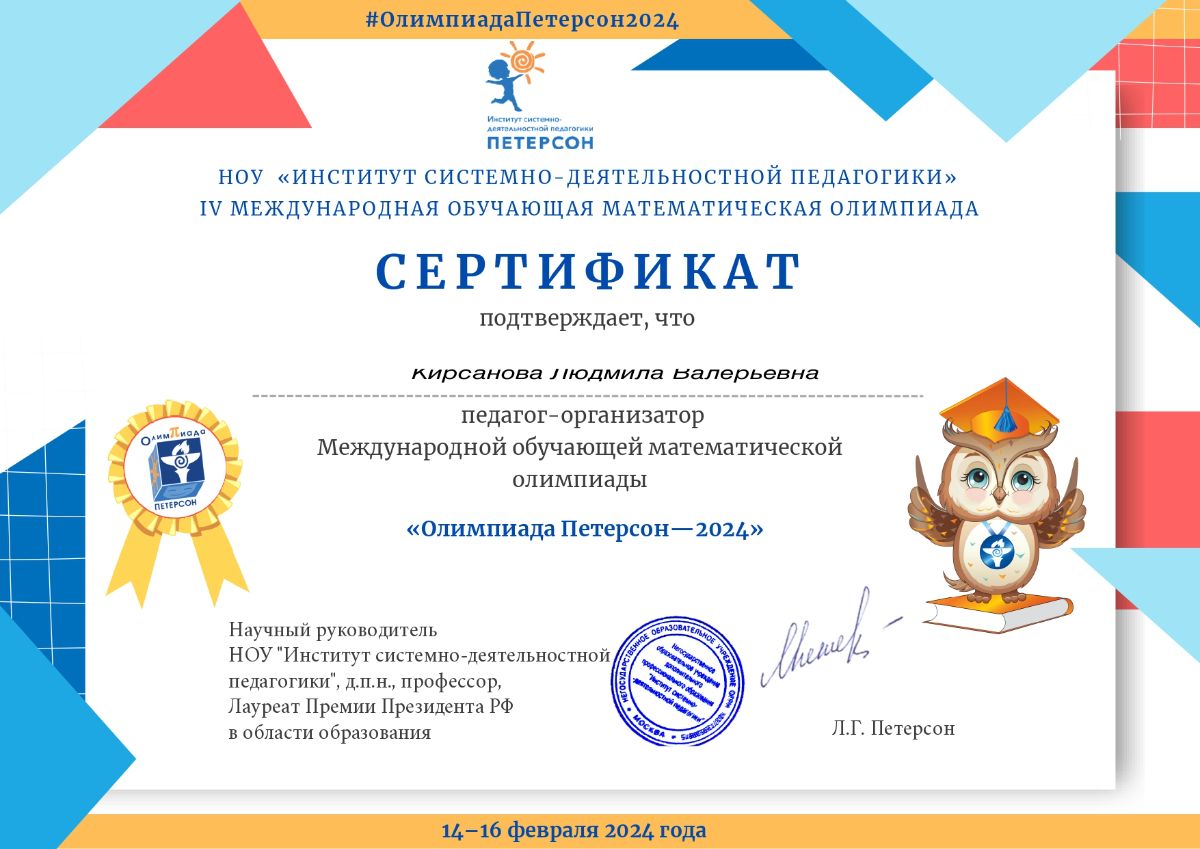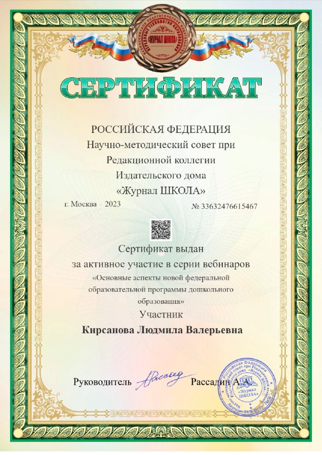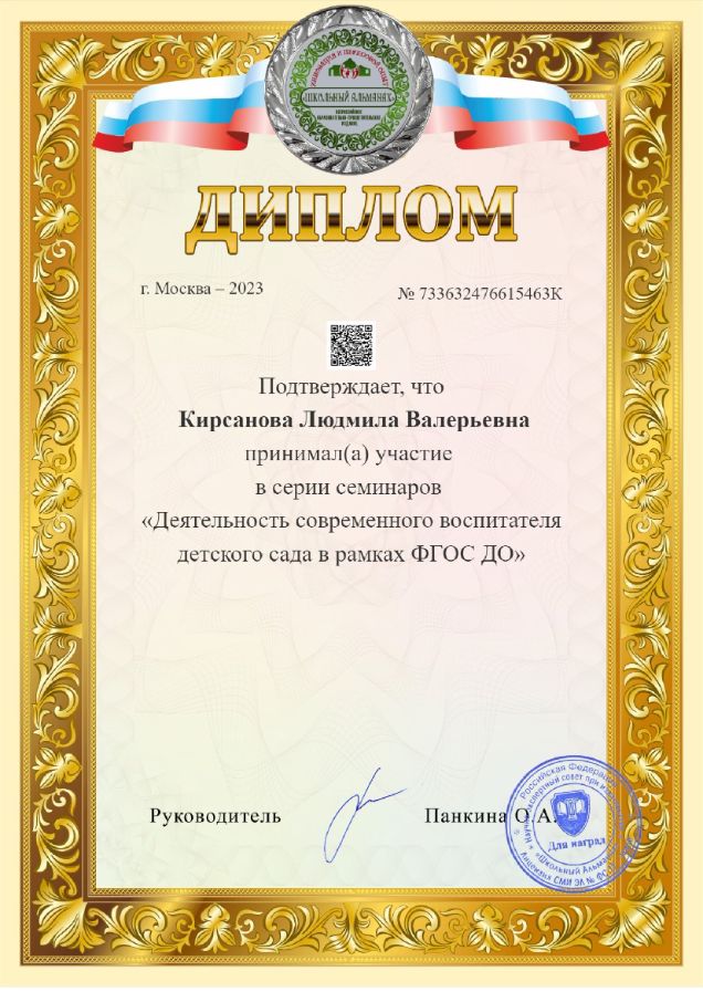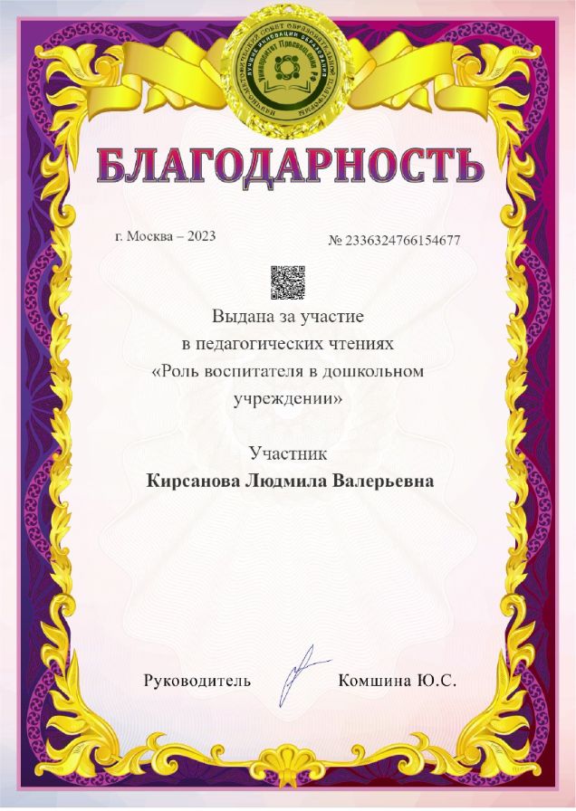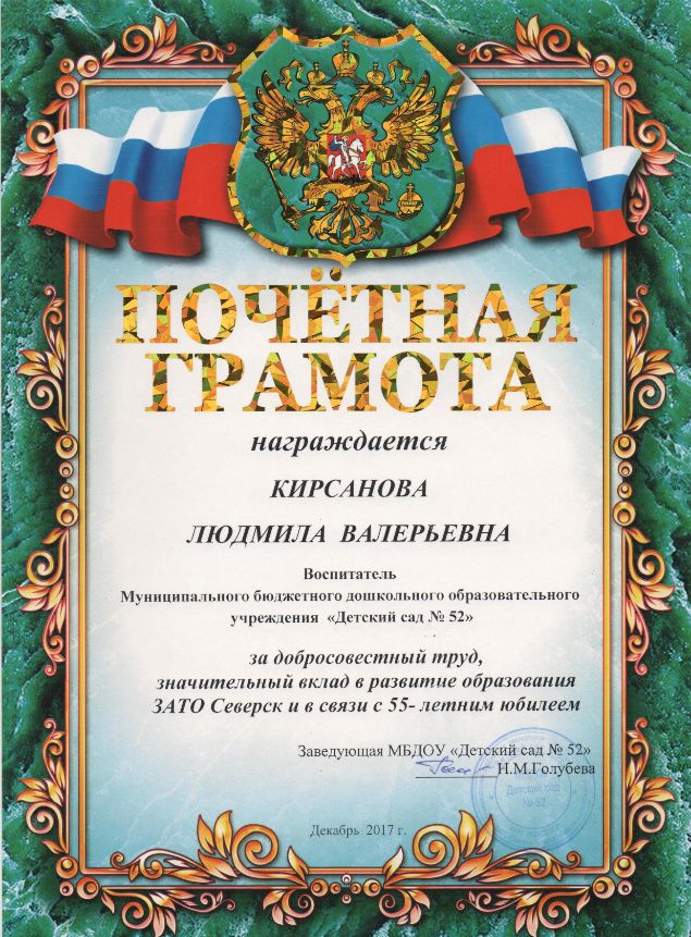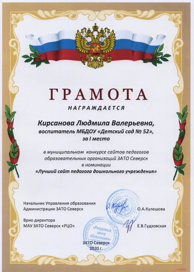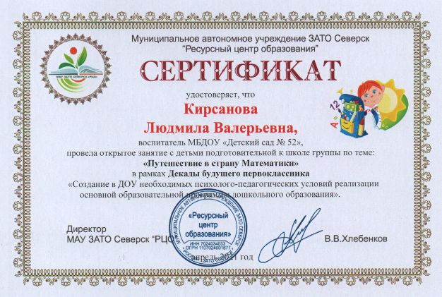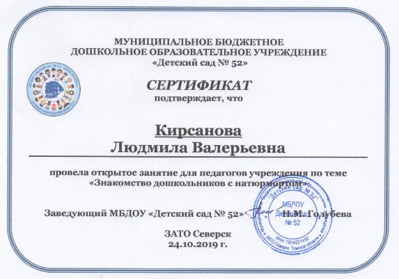 Ф.И.О.: Кирсанова Людмила Валерьевна