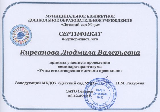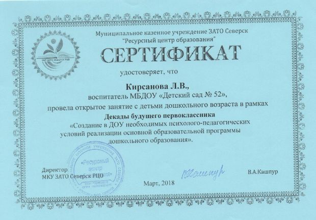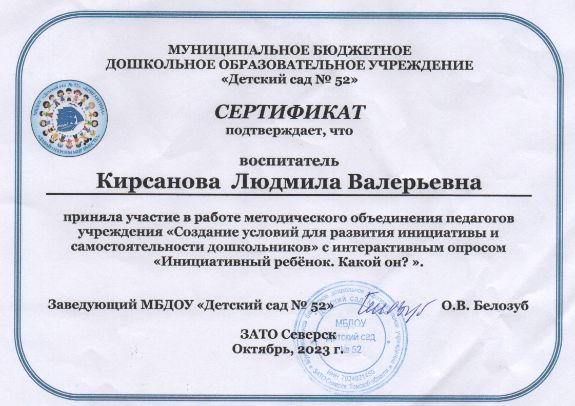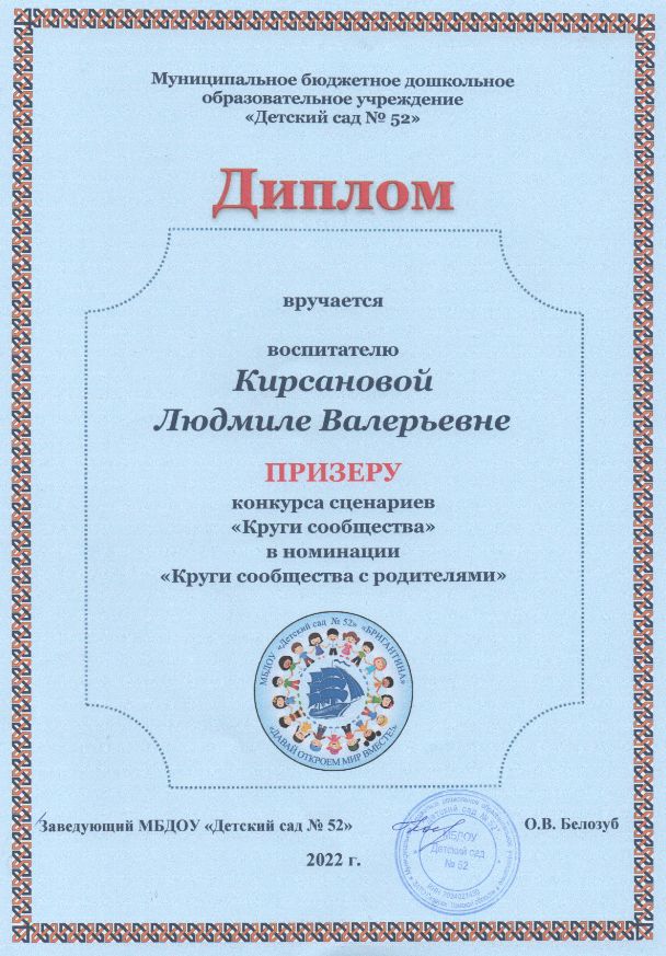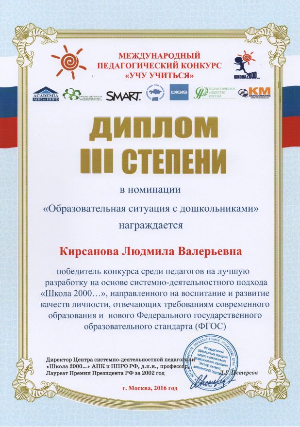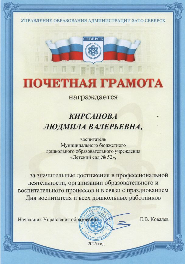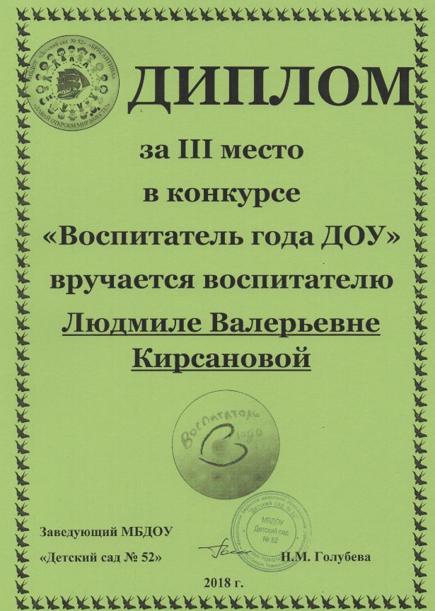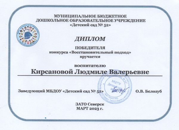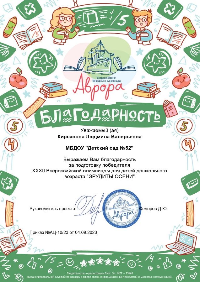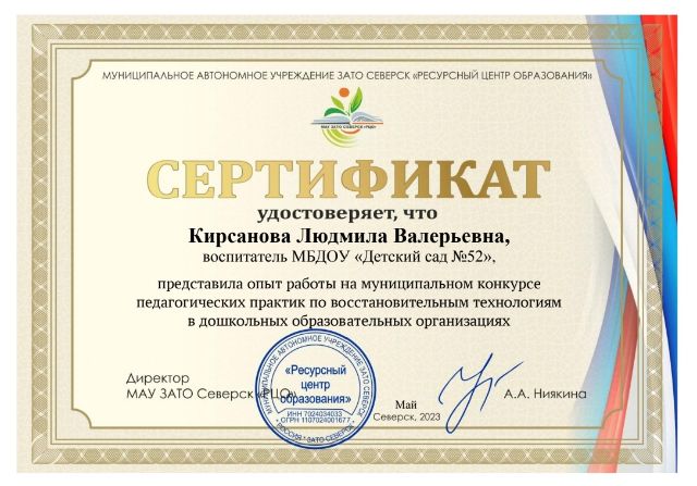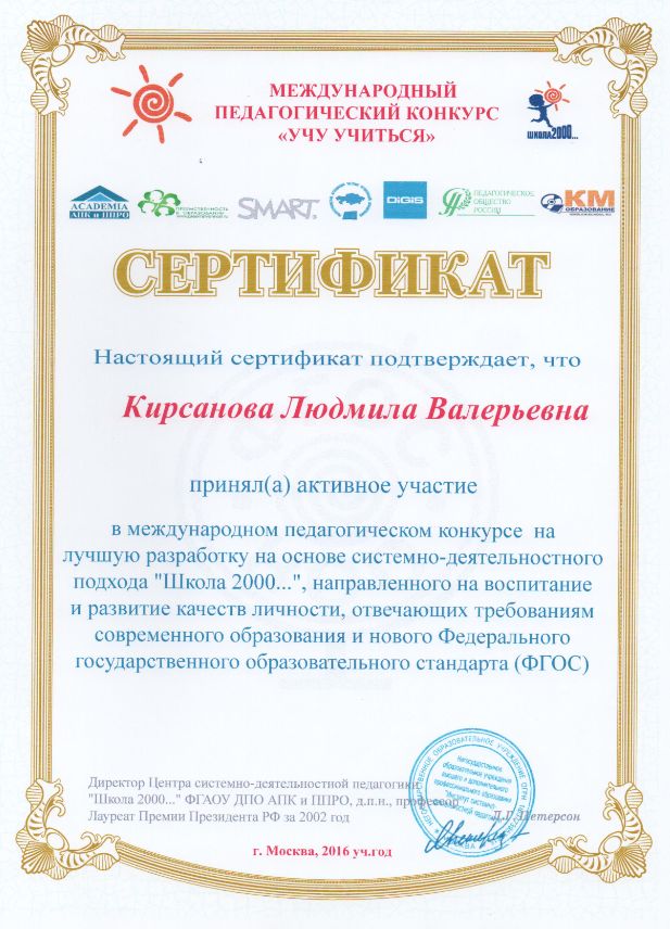 Ф.И.О.: Кирсанова Людмила Валерьевна