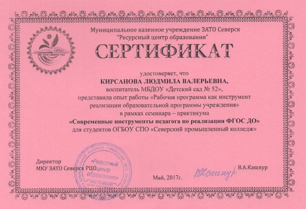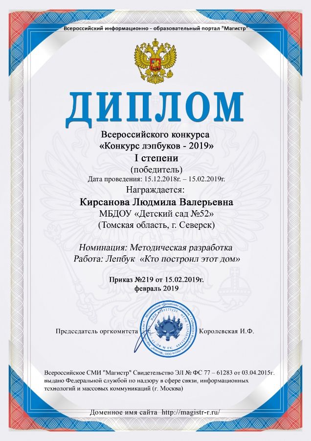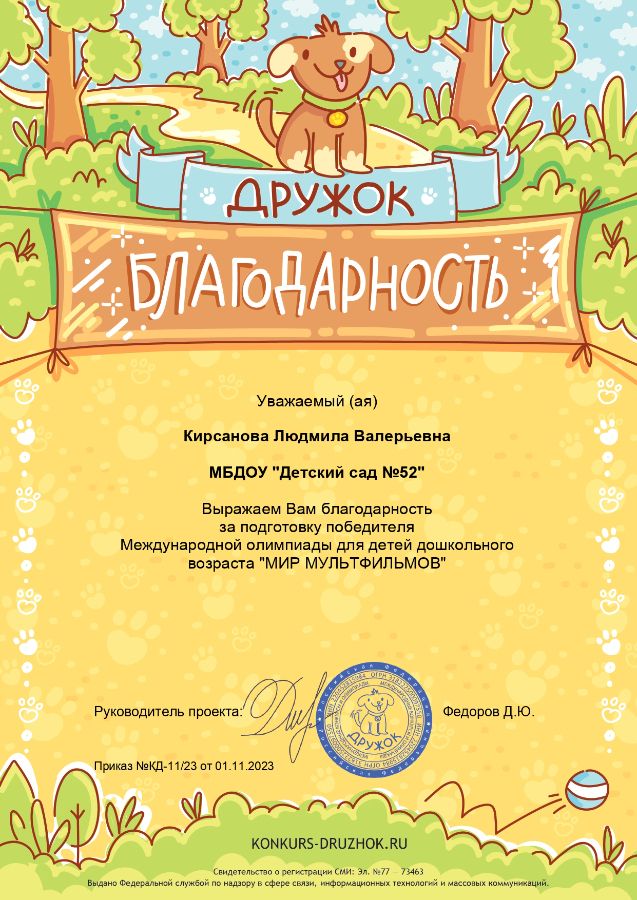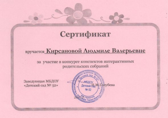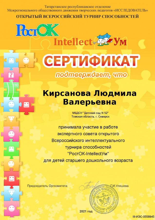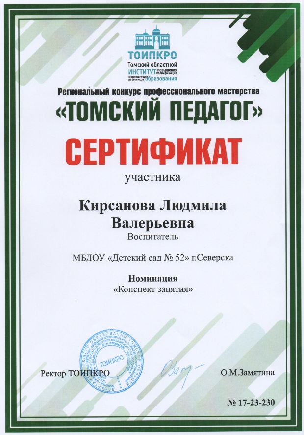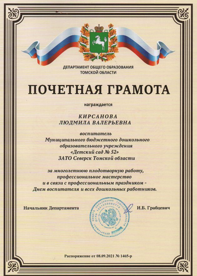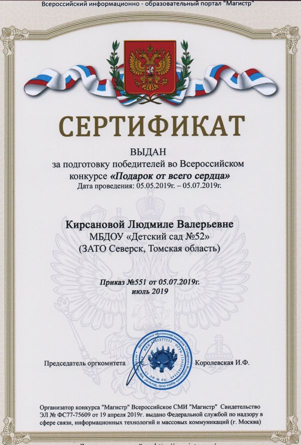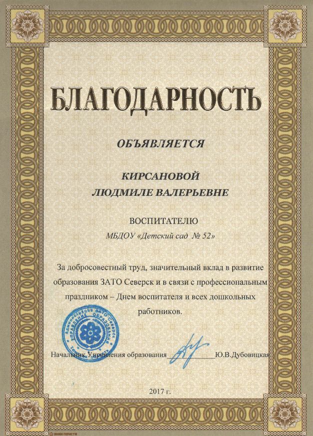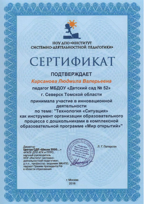 Ф.И.О.: Кирсанова Людмила Валерьевна
