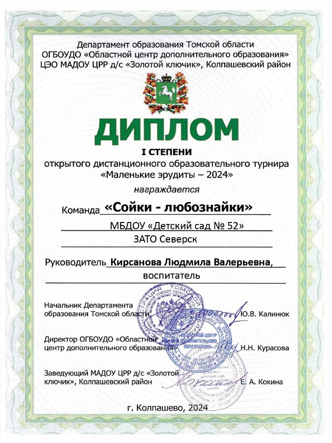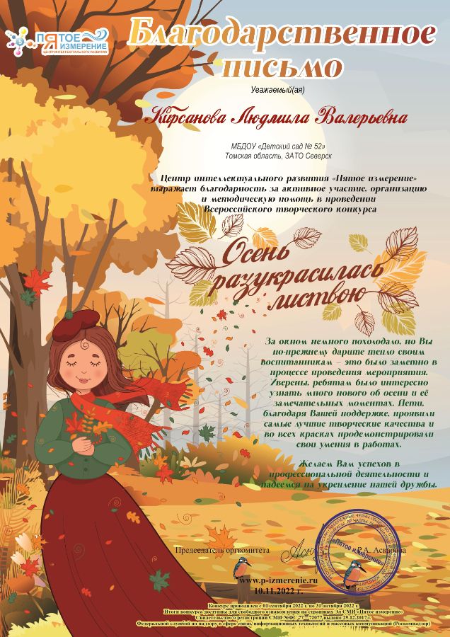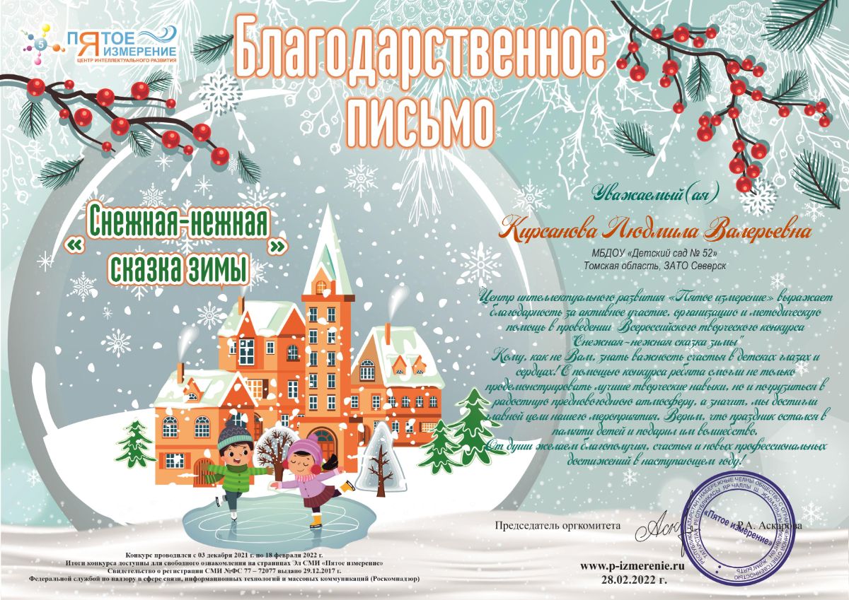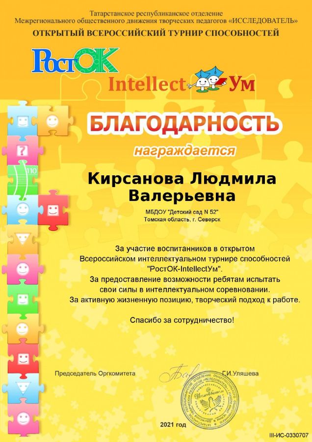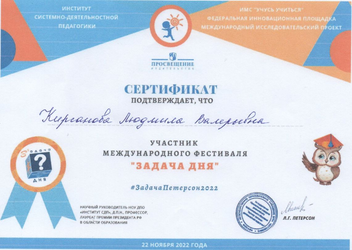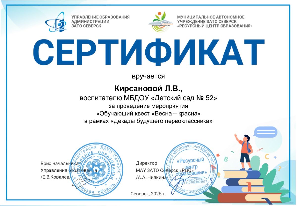 Ф.И.О.: Кирсанова Людмила Валерьевна